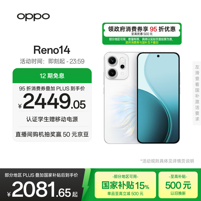 OPPO Reno15c 12GB+512GB 星光蝴蝶结 5000万像素高清长焦 出圈实况 5G智能游戏 AI拍照手机 2705.56元