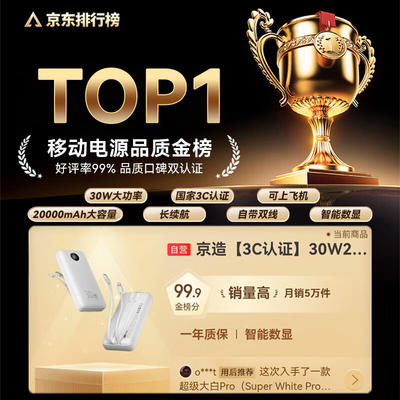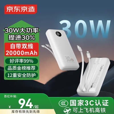 京东京造 45W双线快充充电宝20000毫安时移动电源 116.91元(需用券)