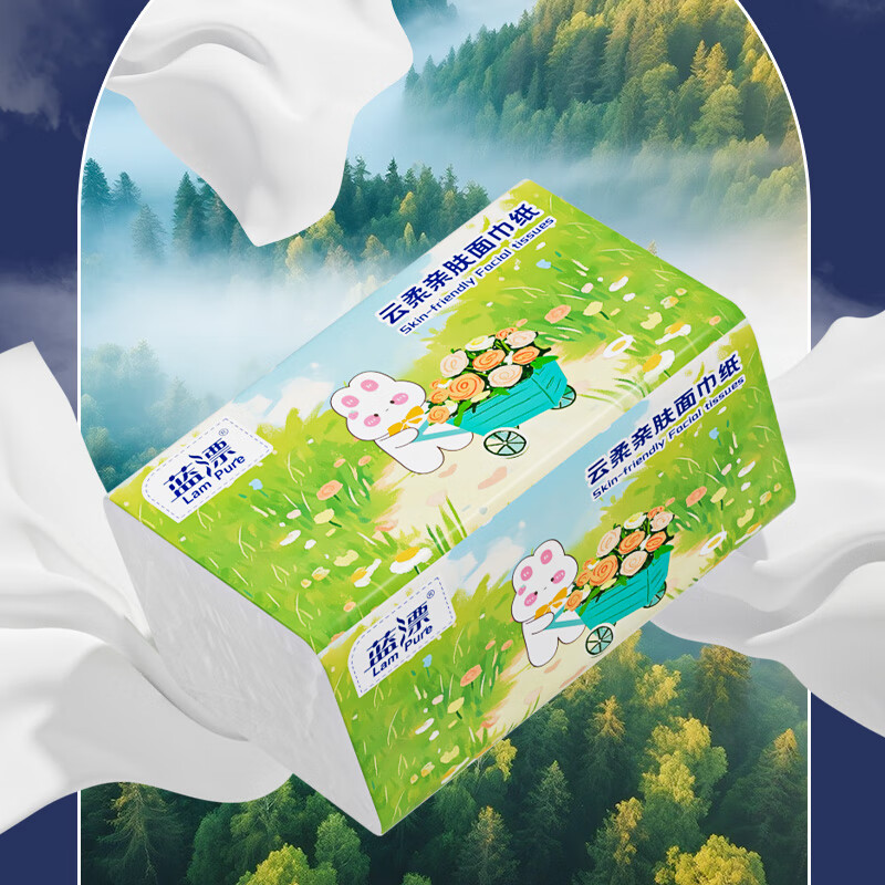 移动端:漫花 气垫抽纸纸巾餐巾纸面巾纸擦手纸卫生纸母婴可用纸抽纸耐用 4层 320抽 6提 29.9元