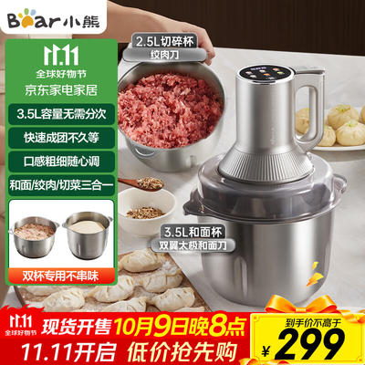 小熊 绞肉机家用 辅食机婴儿绞馅机碎肉机打蒜器电动搅肉机约2L钢碗双刀QSJ-L03K3 67.2元