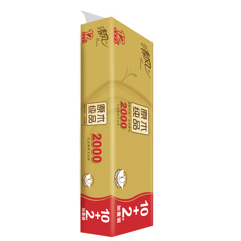 清风无芯卷纸 原木金装4层加厚2000克/12卷 卫生纸厕纸纸巾