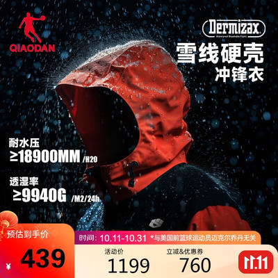 乔丹 山神硬壳冲锋衣男女外套运动风衣防泼水户外登山服夹克 黑色 175/L 304元(需用券)