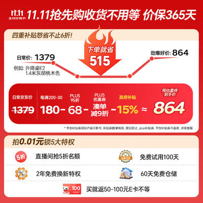京东京造 Jump电动升降桌电脑桌书桌办公学习电竞桌子胡桃木色1.2M 595.15元(需用券)