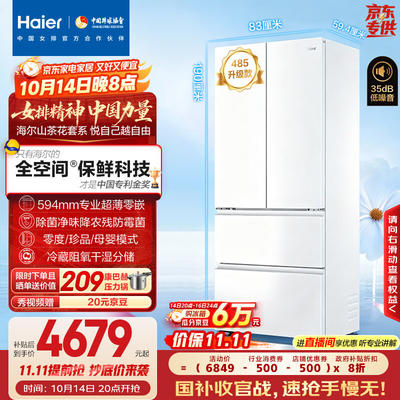 移动端、京东百亿补贴:海尔 Haier 山茶花系列 BCD-485WGHFD1BWLU1 风冷多门冰箱 485L 白色 4149.2元