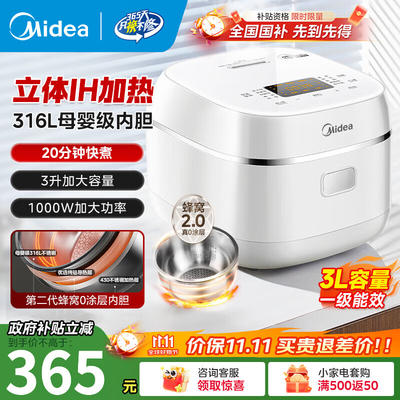 国家补贴:美的 花瓣IH电饭煲3-4-5人0釜抗菌青瓷 4L 356.41元(需用券,返50元后)