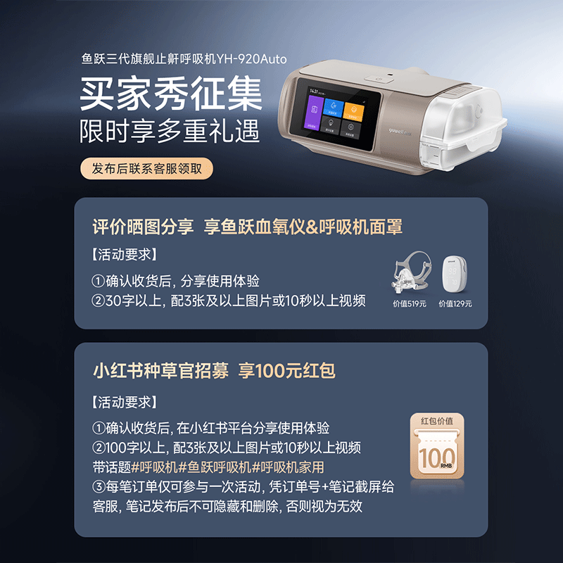 值选:yuwell 825Auto双水平全自动睡眠呼吸机 1913.8元