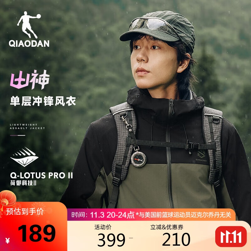乔丹山神风衣男外套秋冬季防风防泼水户外冲锋登山夹克 刚果色/薏仁色 XL 149元