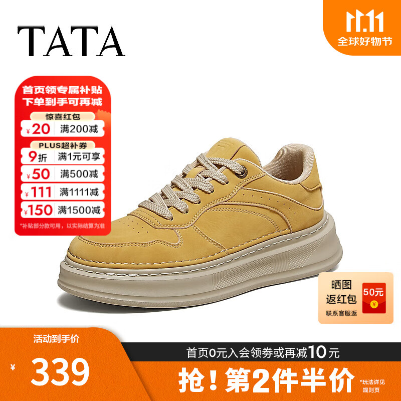 他她 2025秋舒适百搭休闲男鞋板鞋VQM01CM5 卡其色 40 143元(需买2件,需用券)