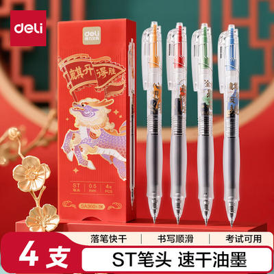 得力 熊有成竹按动中性笔 0.5mmST头速干顺滑学生中性笔刷题笔 黑色4支/盒 SA233 0.39元