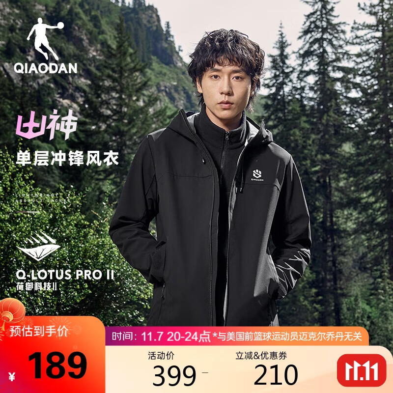乔丹山神风衣男外套秋冬季防风防泼水户外冲锋登山夹克 刚果色/薏仁色 XL 149元