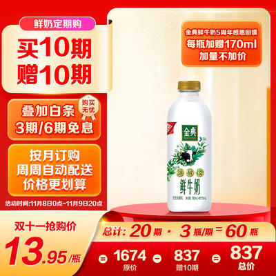 国家补贴:金典 yili 伊利 全脂鲜牛奶 235ml*4 巴氏杀菌 11.61元