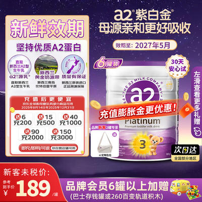 a2 新西兰紫白金版 3段 婴幼奶粉 900g 1罐 208元