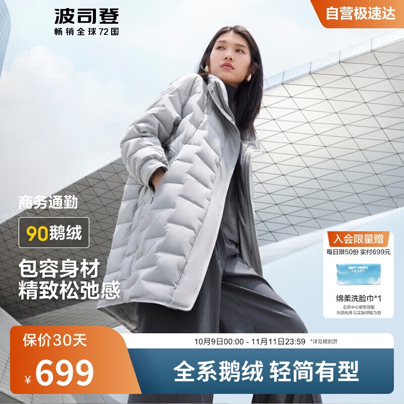 BOSIDENG 波司登 2025羽绒服女长款氧气系列90绒宽松潮流保暖外套B250245232 太空银灰8H05 L 170/92A 体重约140-150斤 1289元(需用券)
