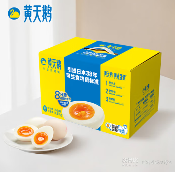 黄天鹅 可生食无菌鸡蛋礼盒装,是日本“可生食鸡蛋之父”加藤宏光亲手打造的高品质鸡蛋,蝉联布鲁塞尔“国际美味奖章”。引进日本38年可生食鸡蛋标准,执行标准:Q/SFJ0001S(国内首个可生食鲜鸡蛋的标准),全流程抑菌才能真正无菌,8大环节,24个关键点,全程控制沙门氏菌。不含沙门氏菌,孕妇孩子食用更安心,无蛋腥味,白水一煮就很香。每100克富含626ug 叶黄素、223ug维生素A、4.3ug维生素E、0.47㎎硒等,含有天然类胡萝卜素,蛋黄天然更黄。 蛋黄软糯不噎人,孩子更爱吃。