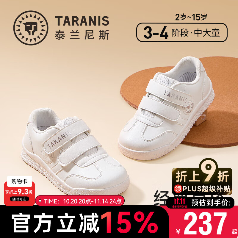 泰兰尼斯 童鞋秋冬季加绒女童儿童鞋高帮板鞋休闲鞋中大童保暖鞋子 白/黑T02D2C2042-2 四季款 35 内长22.5cm适合脚长21.5cm 179元