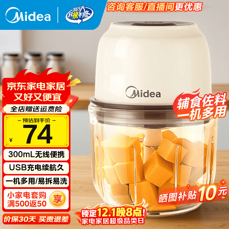 名创优品 婴儿辅食机小型绞肉机家用电动打蒜器蒜泥捣碎器绞馅搅拌机搅蒜器捣蒜蒜蓉搅大蒜粉碎搅蒜 26.1元