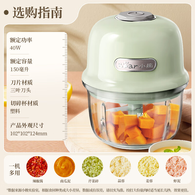 小熊 绞肉机家用 辅食机婴儿绞馅机约2L钢碗双刀QSJ-L03K3 76.54元