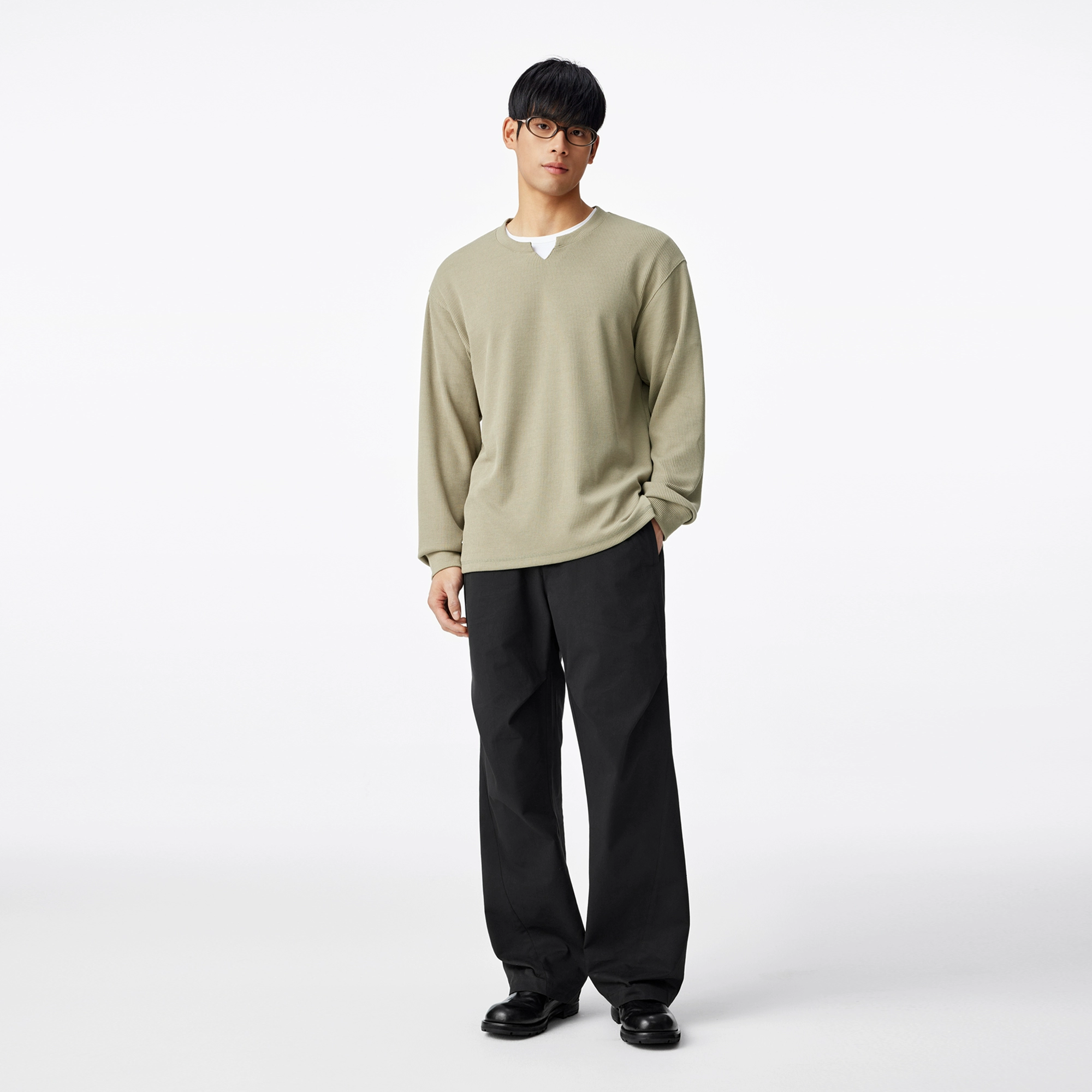 移动端:太平鸟 男装 2024春季华夫格卫裤阔腿直筒休闲裤黑色男生裤潮 276元(淘金币可抵22.14元起)