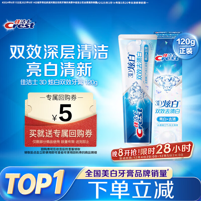 移动端、京东百亿补贴:佳洁士 3D炫白牙膏含氟牙膏去黄清新口气家庭家用囤货 (小苏打170+双效170+茉莉120)*2 35.91元(需用券)