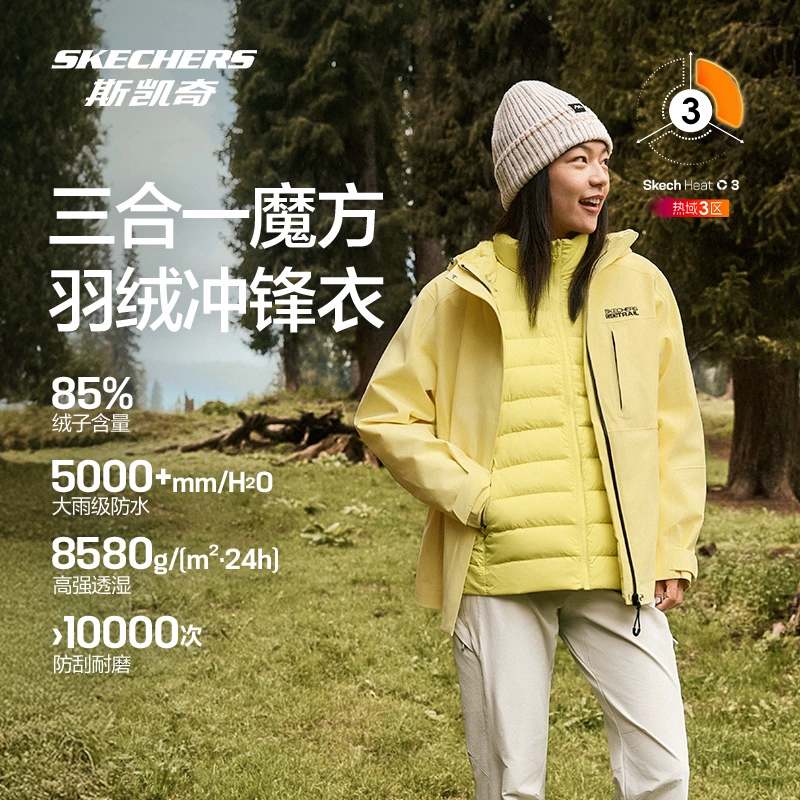 探路者 冲锋衣三合一套羽绒户外运动休闲登山露营防水男女款外套2024新款 极地白黑色 1009元
