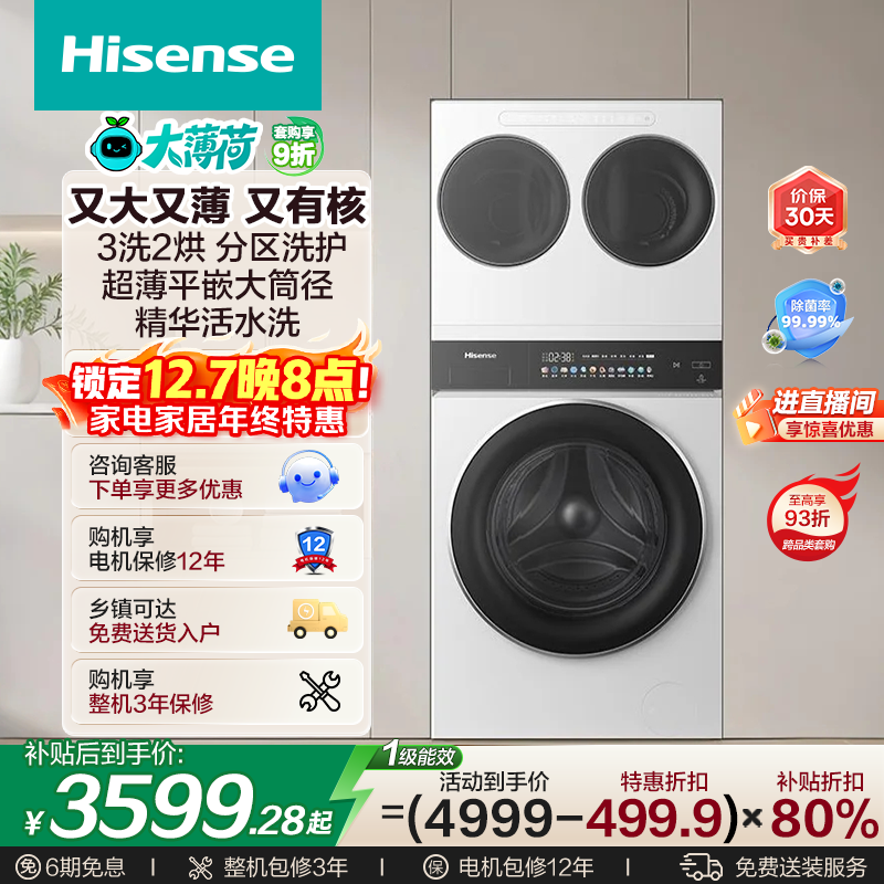 PLUS会员:海信 棉花糖智享版MAX HG12M5S+DG12M5S 热泵洗烘套装 5014.18元(需用券)