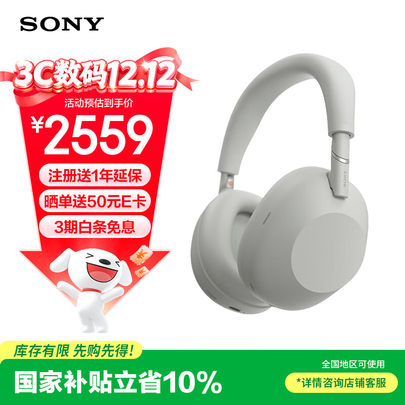 政府补贴:索尼 WH-1000XM5 蓝牙耳机 铂金银 1578.3元(需领券、需首购)晒单后