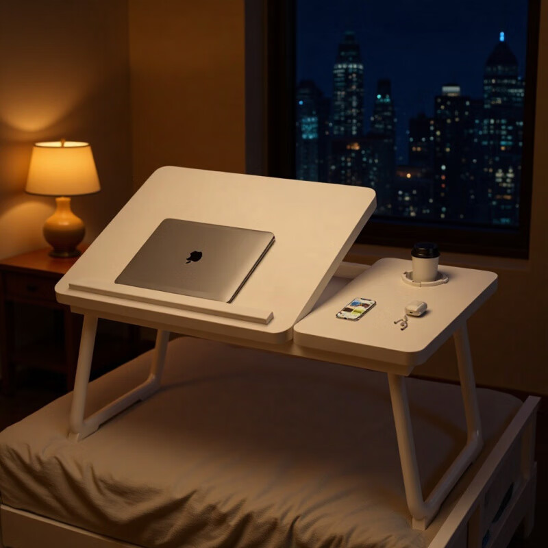 听见时光 床上电脑桌折叠小书桌 学生宿舍学习桌 飘窗家用懒人桌 白色带杯托 24.33元(凑单后19)