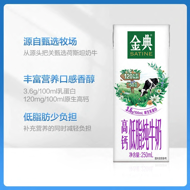 移动端:金典 高钙低脂纯牛奶 250ml×12盒 40.5元(淘金币可抵5.44元起)