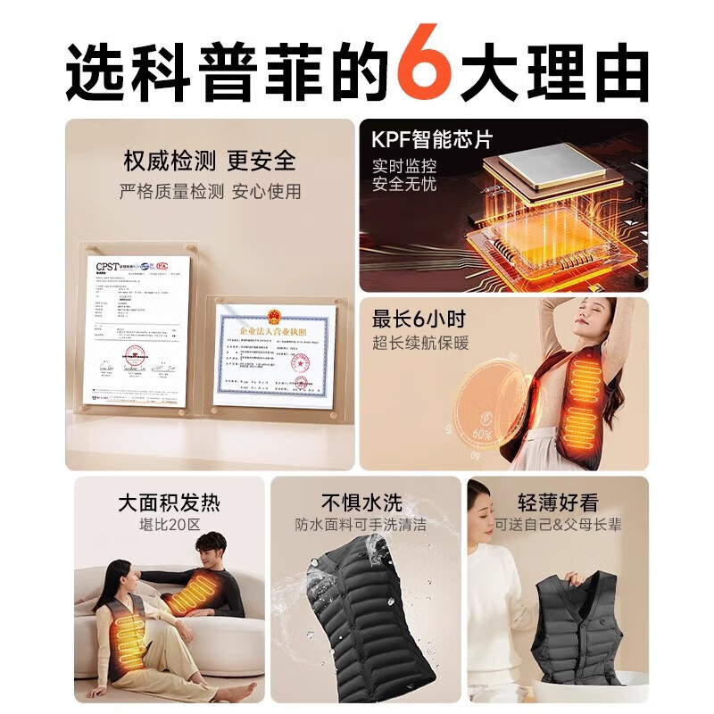 科普菲 充电加热马甲夹背心电热全身保暖 升级纤薄棉绒(单马甲) M 99元(需用券)