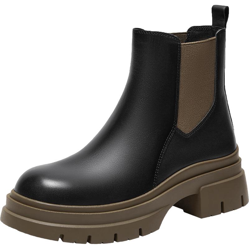 百思图 秋冬款保暖时髦潮流烟筒靴粗跟女短靴