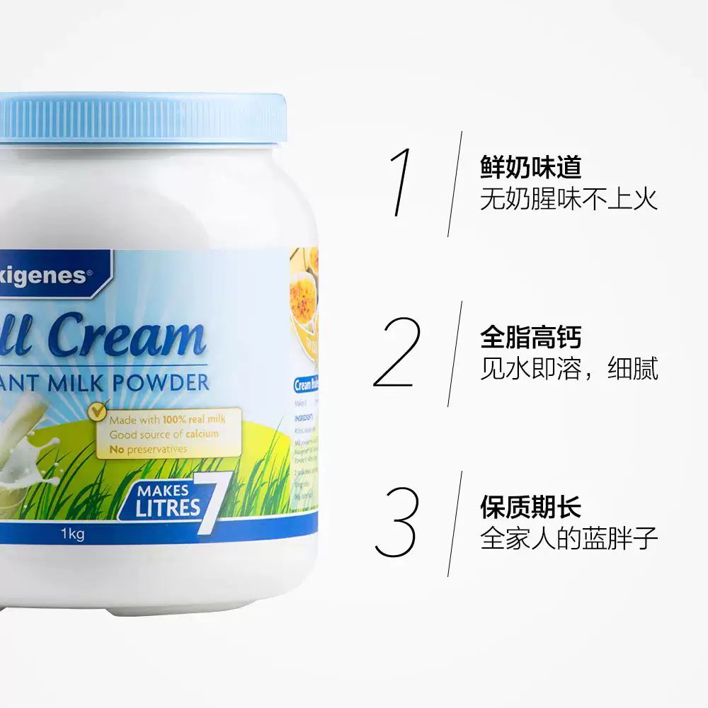 再降价:澳洲德运 全脂高钙牛奶粉 中老年儿童早餐奶 1KG/袋 53.42元包邮+79个淘金币