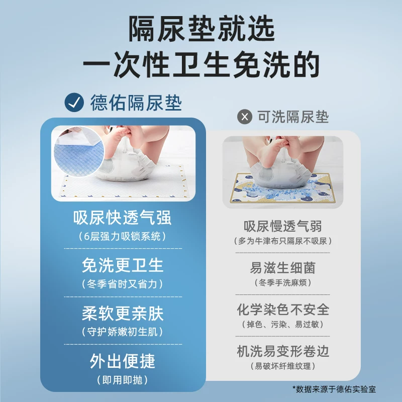 德佑 婴儿隔尿垫新生儿宝一次性床垫护理垫吸水透气不回渗隔尿垫 M码0-5个月 12.9元