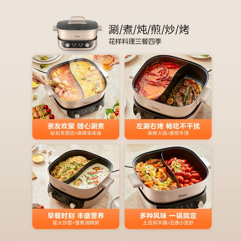 国家补贴:美的 分控速沸双控电火锅电锅家用电煮锅鸳鸯分体式多功能料理锅 141.3元(需用券)