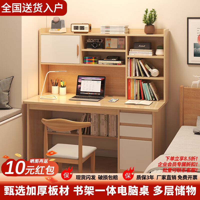 舒客艺家 电脑桌 台式小户型学习办公桌 80*50*74 木纹白架 54.9元