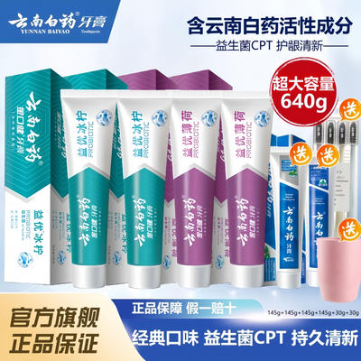 云南白药 留兰香型牙膏215g*2支+薄荷清爽型牙膏230g*2支(共四支 890g) 99元