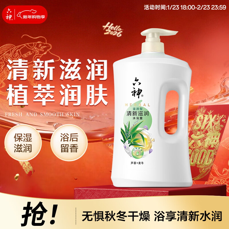六神 清新滋润沐浴露 1.5L 22.91元(需用券)
