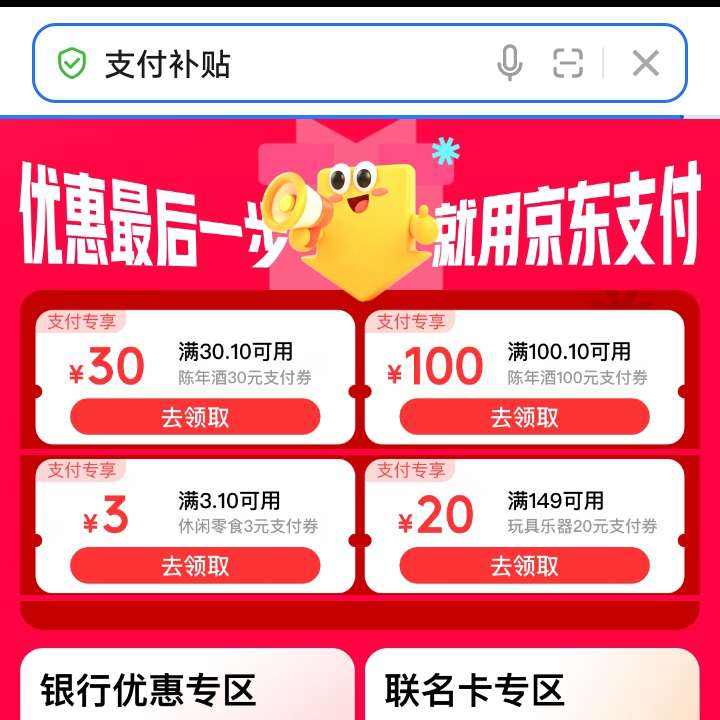 京东支付补贴,领取100/30/3等无门槛京东支付补贴,好物一分购,速度撸!