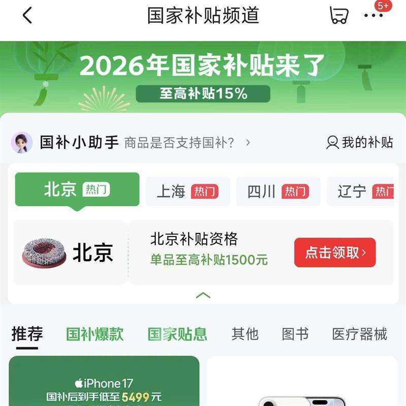 京东2026国家补贴会场正式开启!至高补贴15﹪,单品最高省1500元