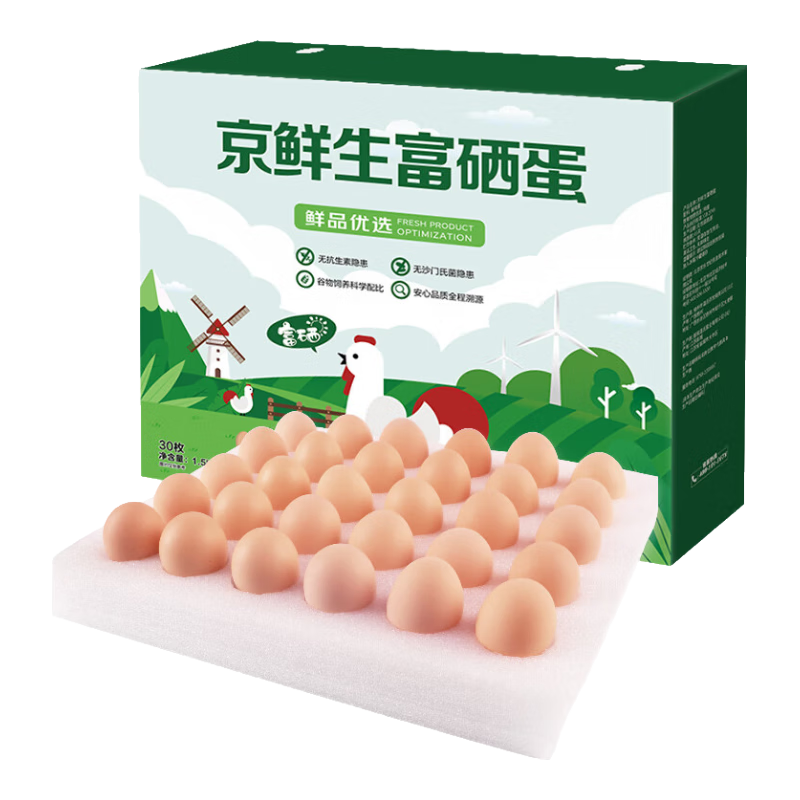 再降价:京东自营 京鲜生 富硒蛋 30枚 3斤/盒