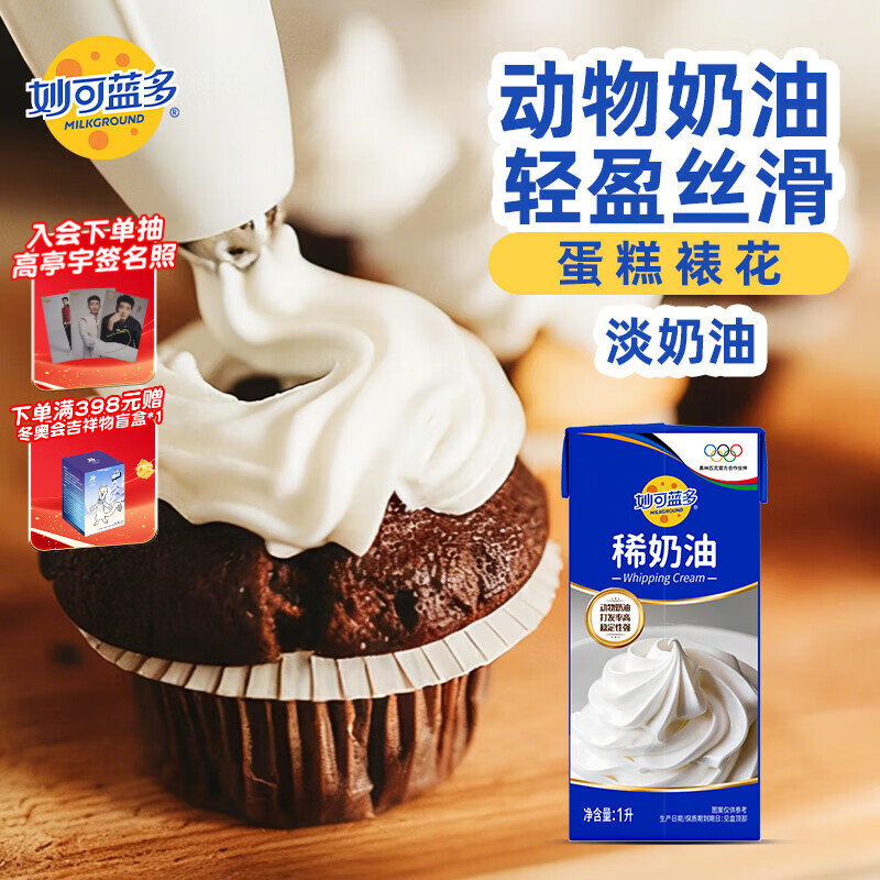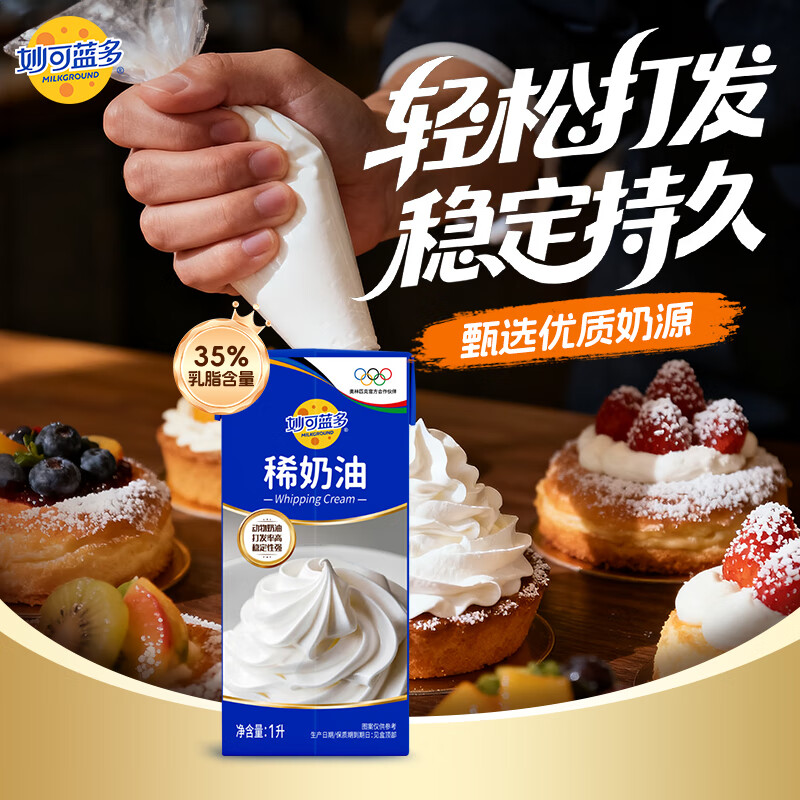 妙可蓝多 淡奶油1L稀奶油动物奶油奶酪奶茶 西点甜点易打发烘焙原料