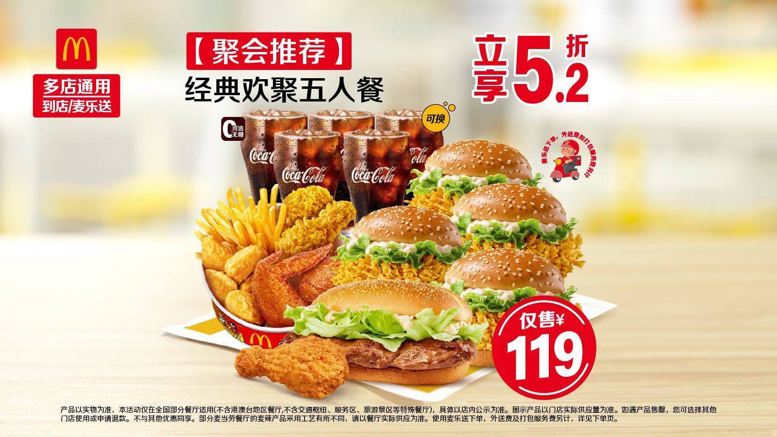 - 这个套餐超适合朋友聚会!里面有巨无霸、麦辣鸡腿堡这些经典款,5个人分刚好,麦乐送直接送到家,不用出门就能开派对,性价比很高~