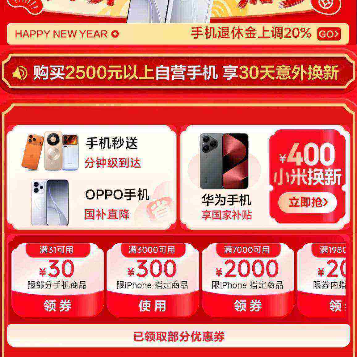 京东 年货节手机会场|购机享至高15﹪国补,领300元3C神券