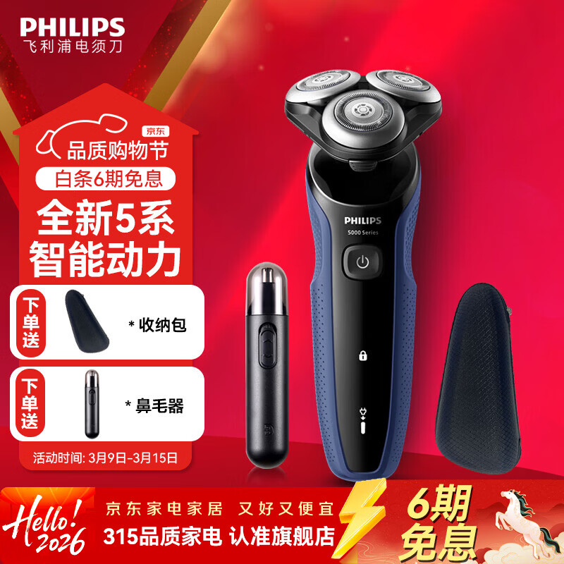 飞利浦 电动剃须刀 5000系列续航升级版快充胡须刀 S5445/03 269元